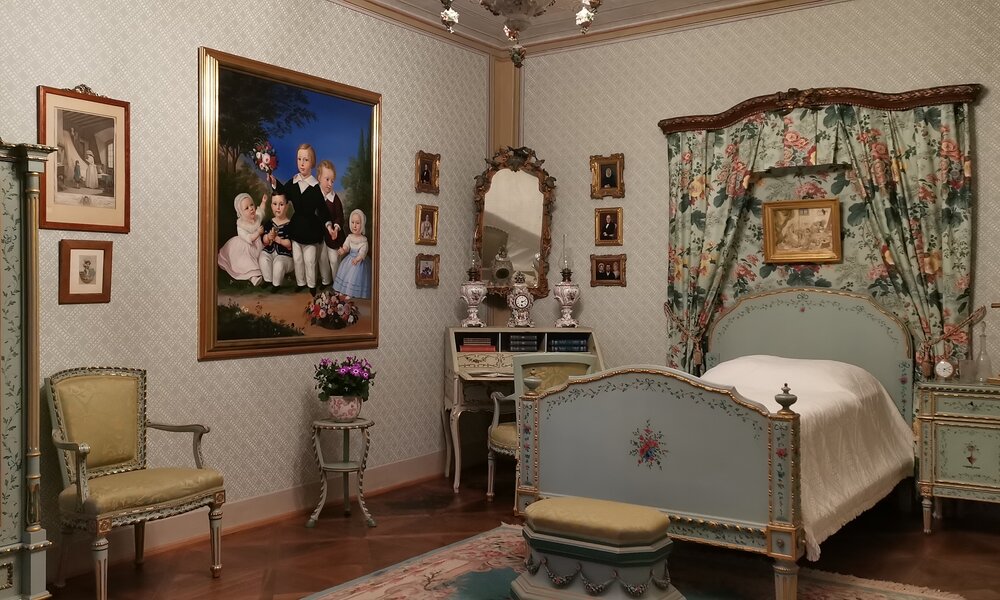 Prohlídka vede místnostmi v severním a západním křídle druhého patra, které mají dochovanou původní výzdobu z 2. poloviny 19. století a jsou bohatě zařízeny nábytkem, obrazy, porcelánem atd.
